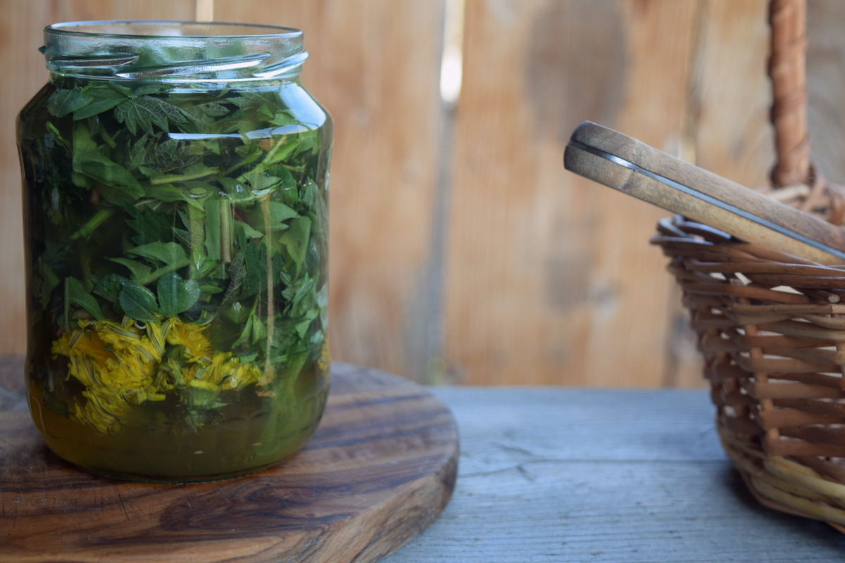 - 1 cup herb-infused oil (arnica, St. John’s wort)